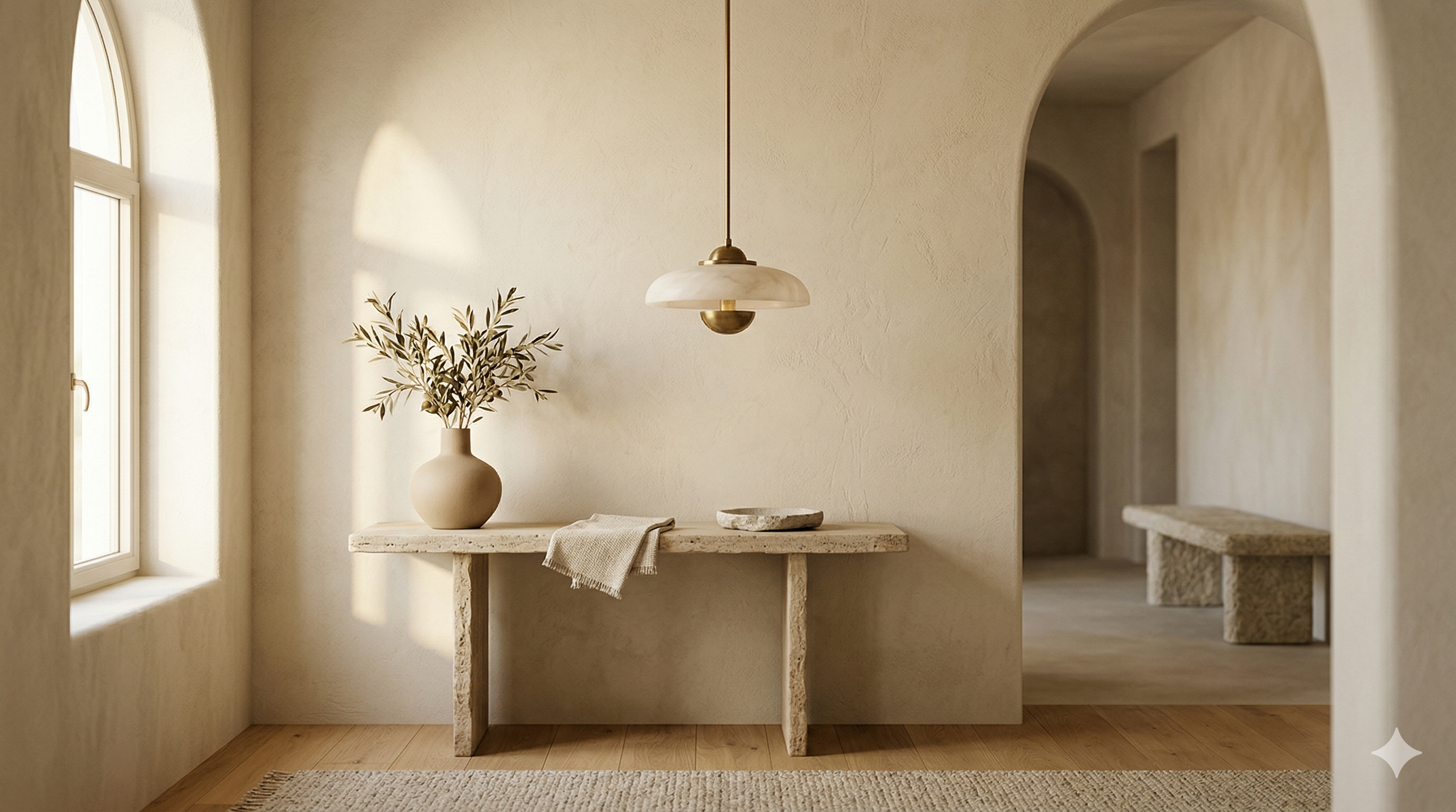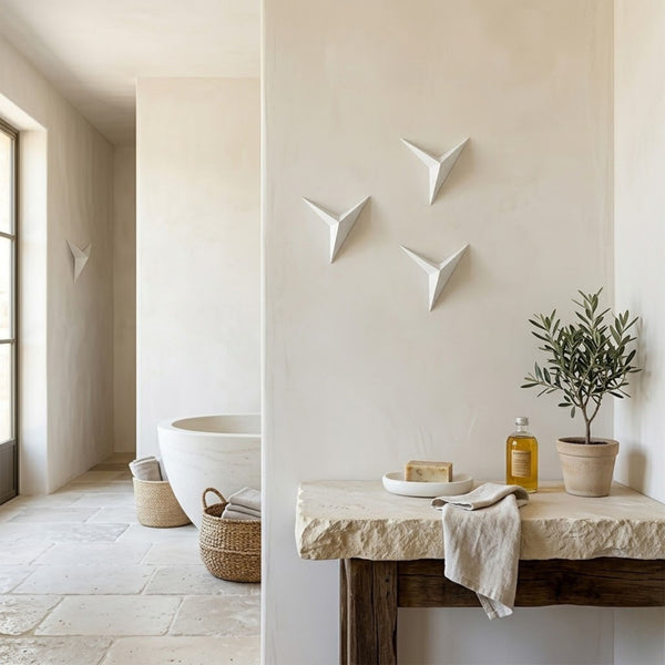 Céramique, travertin, verre soufflé, laiton — chaque pièce de la collection est choisie pour la qualité de ses matériaux. Nous refusons le plastique et le médiocre.